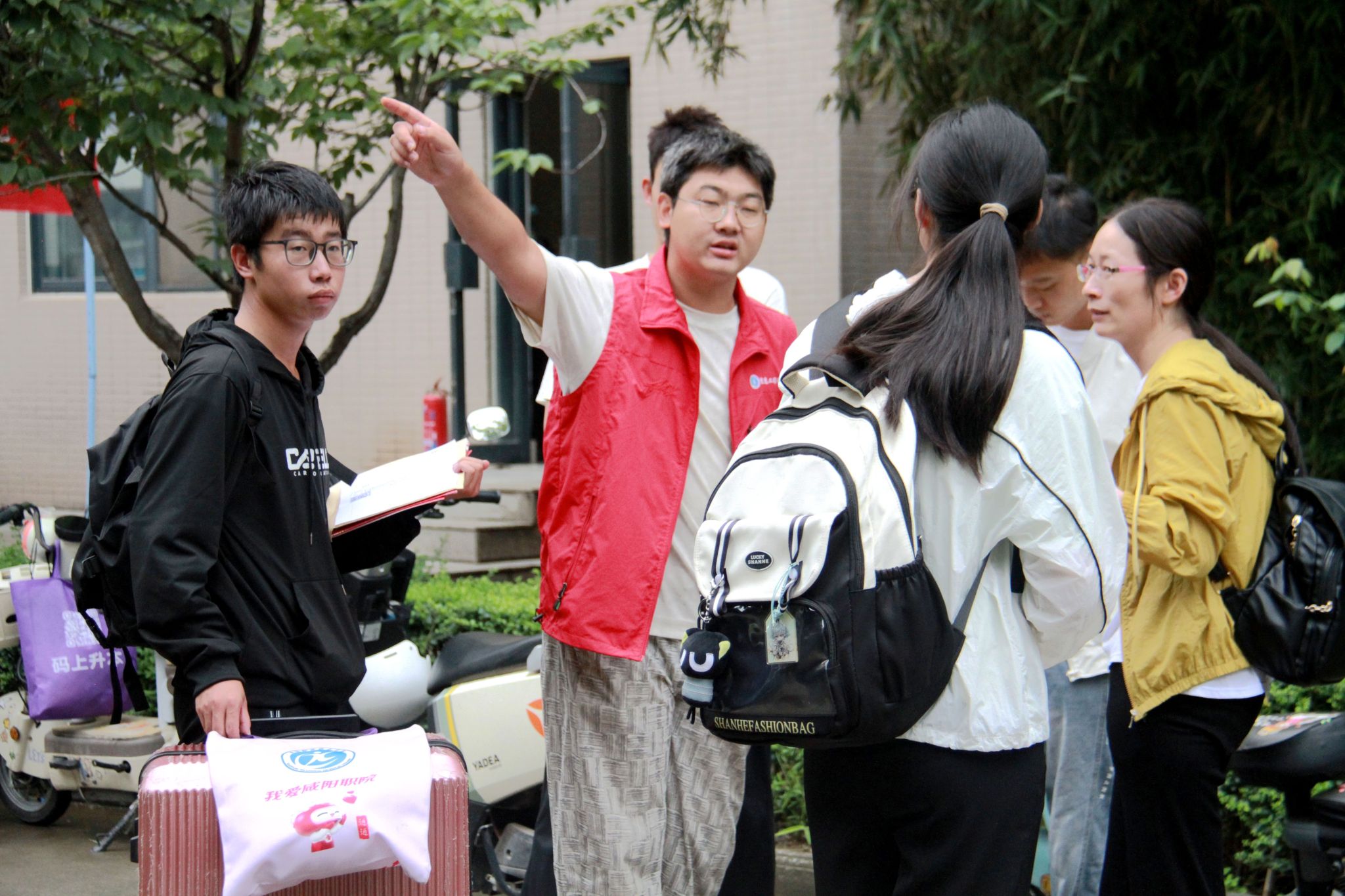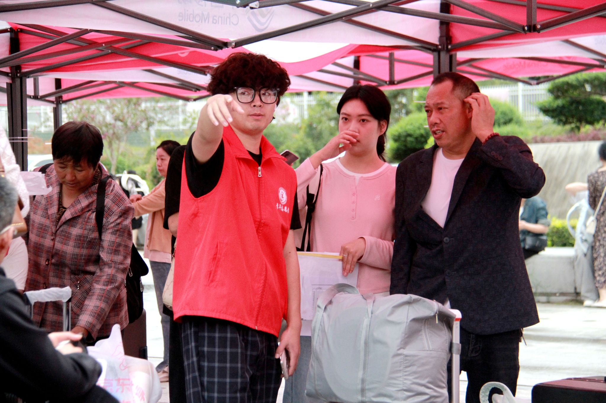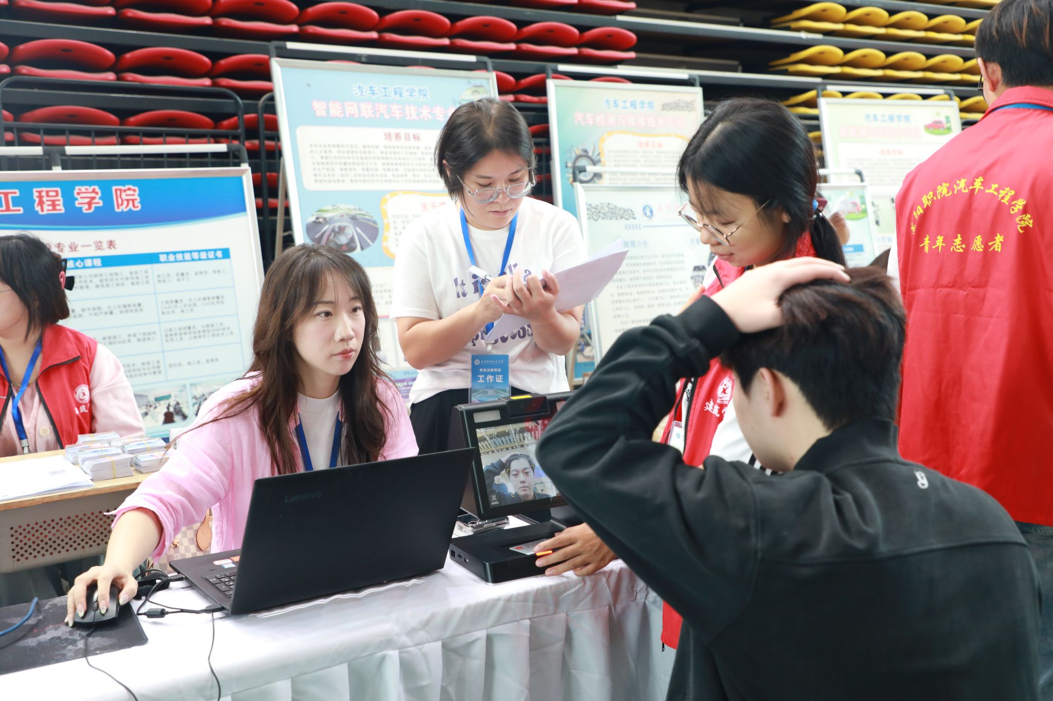 报到现场,各二级学院分别设立报到点,师生、志愿者们热情引导新生办理入学手续,通过手机客户端迎新模块了解报到流程、完成线上缴费、查询宿舍安排,享受快捷报到,实现“掌上迎新”。学院同步开通“绿色通道”,为家庭经济困难学生提供精准帮扶,传递人文关怀和教育温度。从火车站、高铁站开往校园的10辆迎新专车,实现了“从站点到宿舍”的无缝衔接。数百名“红马甲”志愿者活跃在校园各个角落,提供引导、咨询、帮扶等贴心服务,让新生与家长倍感温暖。