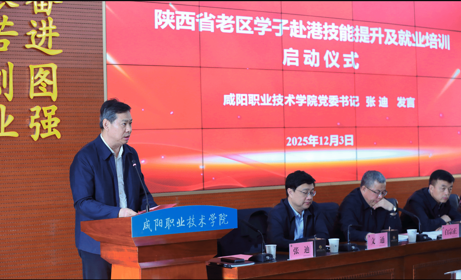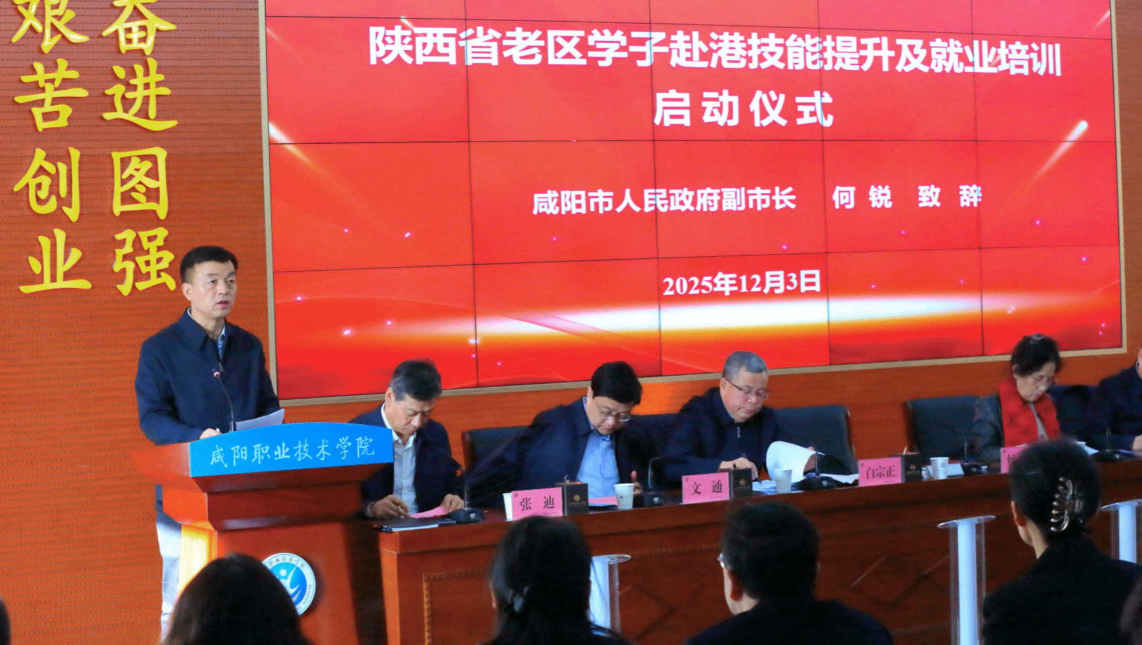 咸阳市副市长何锐致欢迎辞。他表示,老区学子赴港培训项目是将陕西的人文积淀、生源潜力与香港的国际化平台、专业化职教体系紧密结合的一个重要创新举措,既为青年成长赋能,也为老区振兴助力,希望赴港学子勤学技能,当好陕港交流的使者。