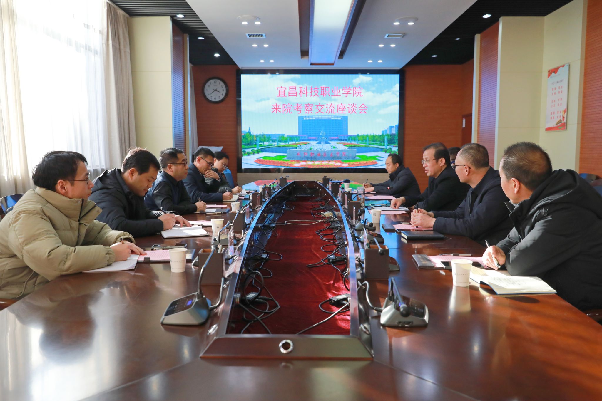 12月25日,宜昌科技职业学院党委副书记、校长李风雷一行5人来咸阳职院考察交流。学院院长杨卫军、副院长杨新宇,师范学院、机电(技师)学院负责人参加座谈会。