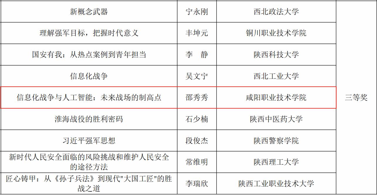 本次展示活动前期经省教育厅专家组对100多部参赛作品评审遴选,最终确定22部作品入围决赛展示环节。邵秀秀的教学作品《信息化战争与人工智能:未来战场的制高点》聚焦信息化战争与人工智能的有机融合,深入剖析了科技发展对现代国防的战略影响,其教学内容兼具前沿性与实践性,获得现场评审专家的一致认可。
