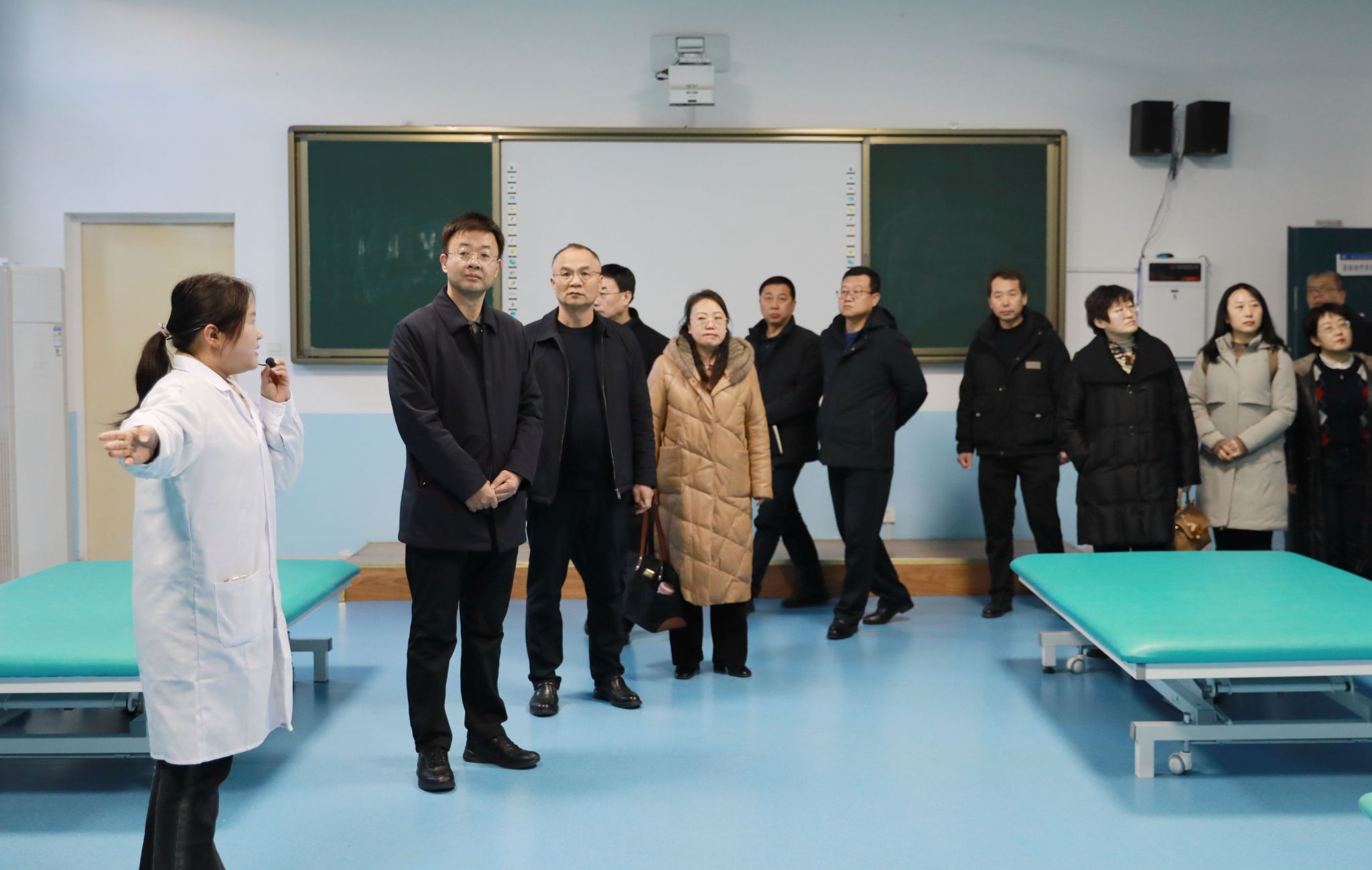 侯静涛一行还考察了医学院实践教学基地、体育馆、游泳馆、党性体检中心。
