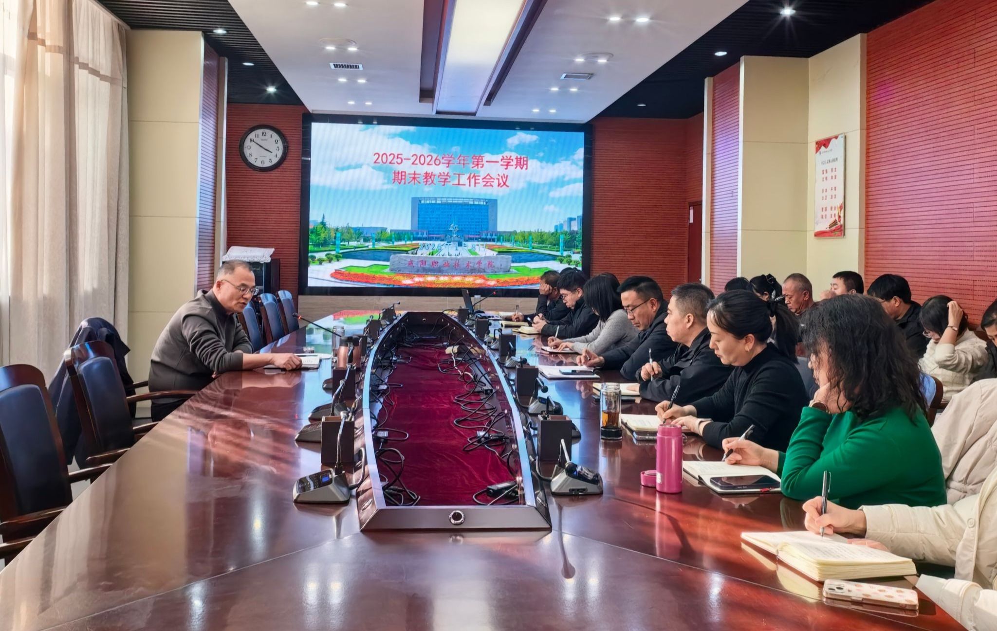 1月8日,咸阳职院召开2025-2026学年第一学期期末教学工作会议。副院长杨新宇,教务处负责人,各二级学院院长、主管教学副院长和教学办主任参加会议。杨新宇主持会议并发表讲话。