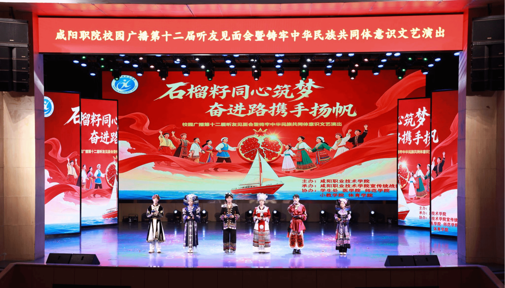 打造“流动课堂”激活育人资源,组织师生赴马栏革命旧址、咸阳博物院等教育基地开展研学活动,在红色文化熏陶中厚植爱国情怀;深化暑期“三下乡”社会实践,医学院“咸小护”服务队、化工学院“咸小美”服务队深入基层开展志愿服务,获得良好社会反响;通过主题班会、团日活动、文化节等载体,促进各族师生交往交流交融。5月,成功举办“铸牢中华民族共同体意识文艺演出”,维吾尔族学生表演的舞蹈《石榴花开》将现场气氛推向高潮,各族师生同台献艺、共展风采,生动演绎了“中华民族一家亲,同心共筑中国梦”的动人篇章,让共同体意识浸润校园每个角落。