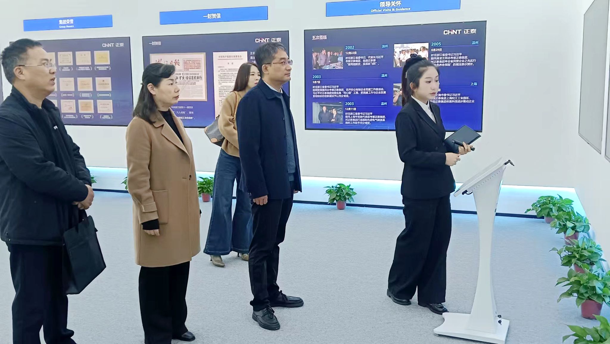 在园区人力资源部总监刘雪婷陪同下,宋飞科一行参观了正泰创新体验中心,详细了解了正泰集团的发展历程、产业布局、技术创新成果及国际化发展战略。深入电容器、互感器、母线槽、配电变压器、集成配电等制造部生产现场,实地察看产品生产工艺、智能化设备运行情况及岗位工作环境。