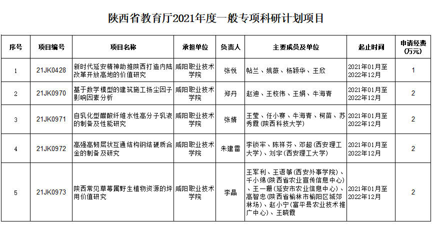 近日,据陕西省教育厅下发的《关于印发2021年度科研计划的通知》(陕教〔2021〕96号)获悉。我院5名教师获教育厅2021年度科研计划项目立项。