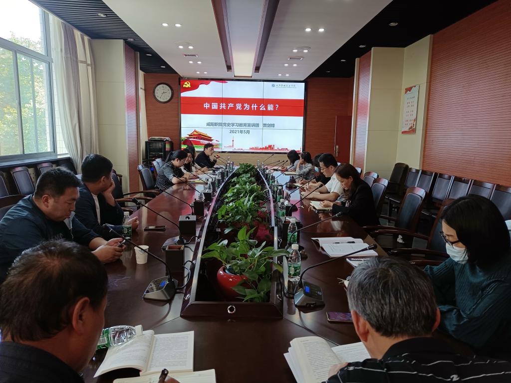 近日,咸阳职院党史学习教育宣讲团成员、双高办主任贾剑峰为继续教育学院、基建处全体党员作《中国共产党为什么能》党课讲座。
