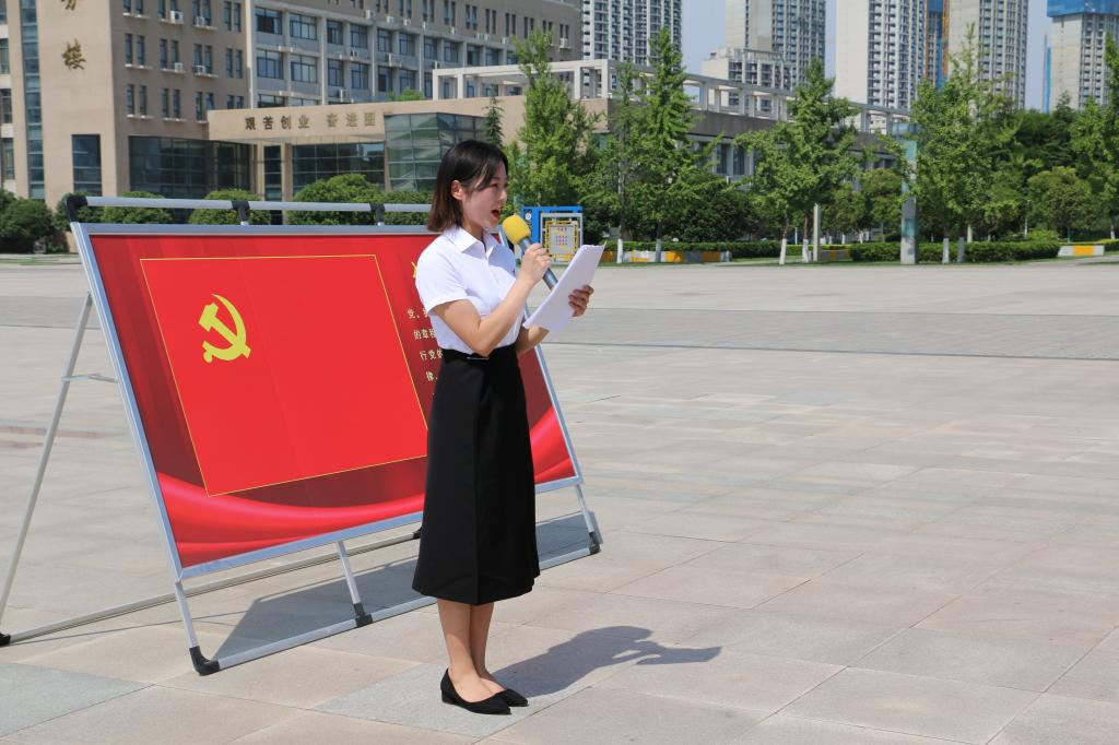 6月30日,财经学院党总支于超越广场开展党总支重温入党誓词暨预备党员入党宣誓活动,宣誓活动由教工党支部书记张颖同志主持,28名老党员,20名预备党员参加。