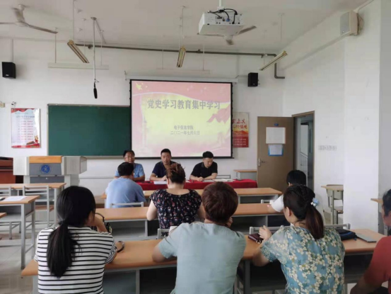 7月6日上午,电子信息学院在教学楼701召开党史学习教育集中学习会,全体教职工参加了学习会,学习会由李春民主持。