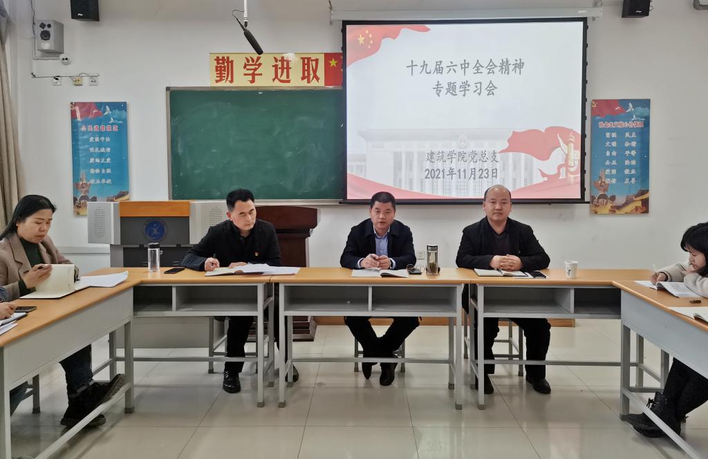 11月23日下午,建筑学院党总支召开学习贯彻党的十九届六中全会精神学习交流会, 学院党委副书记张建刚出席会议,会议由建筑学院党总支书记邢剑宏主持。