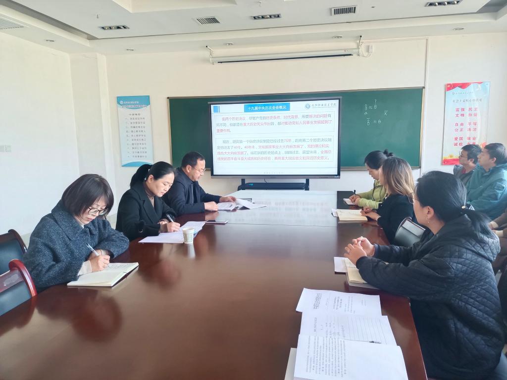 会议集中学习了《中国共产党第十九届中央委员会第六次全体会议公报》和《中共中央关于党的百年奋斗重大成就和历史经验的决议》。医药化工学院党总支书记高掌乾做了学习党的十九届六中全会精神专题报告。