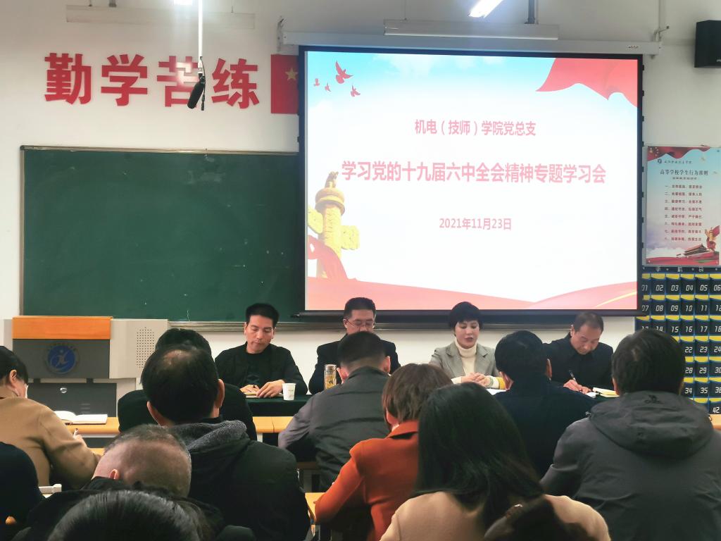 11月23日,机电(技师)学院专题学习党的十九届六中全会精神,学院副院长芮红亚参加会议,机电(技师)学院全体教职工党员参加。