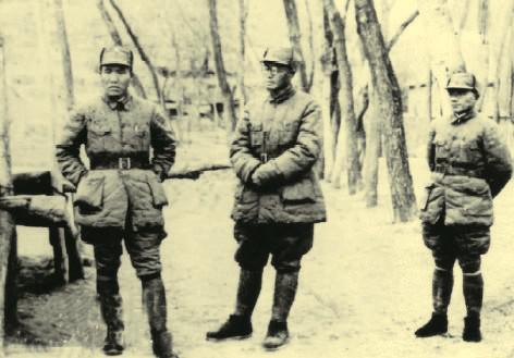 李达(左)与刘伯承、邓小平在太行山区
